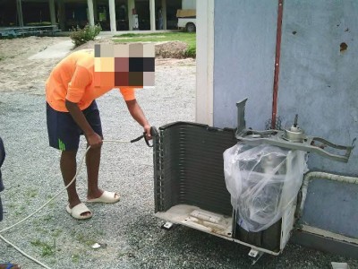 1 ปี ที่ผ่านมานำนักศึกษาออกปฏิบัติงานล้าง บำรุงรักษาเครื่องปรับอากาศ ศาลาประชาคมอำเภอบ้านบึง จังหวัดชลบุรี กย67